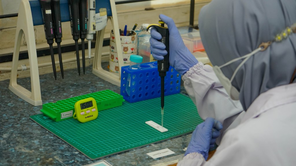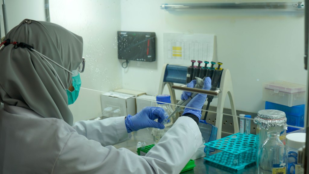Experts in bioinformatics, we work on protein design, such as enzymes, epitopes for vaccines, proteins for diagnostic kits, and other functional proteins. Alpha-amylase is one of the bioinformatics-based products that has been successfully produced. Furthermore, we also developed the vaccine for COVID-19, influenza, gumboro (IBDV), dengue, chikungunya, and HPV. In the diagnostic platform, we developed Lateral Flow Assay kit to detect specific local pathogens due to Indonesia’s genetic diversity. One of the products that have been established is CEPAD (in collaboration with Pusris Unpad, TMC, and PBI), a rapid diagnostic test for COVID-19.